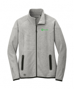 This flatback knit thermal jacket features an exposed coil zipper with molded cord pull, welded front zipper pockets with locking pulls, and raglan sleeves with articulated elbows.